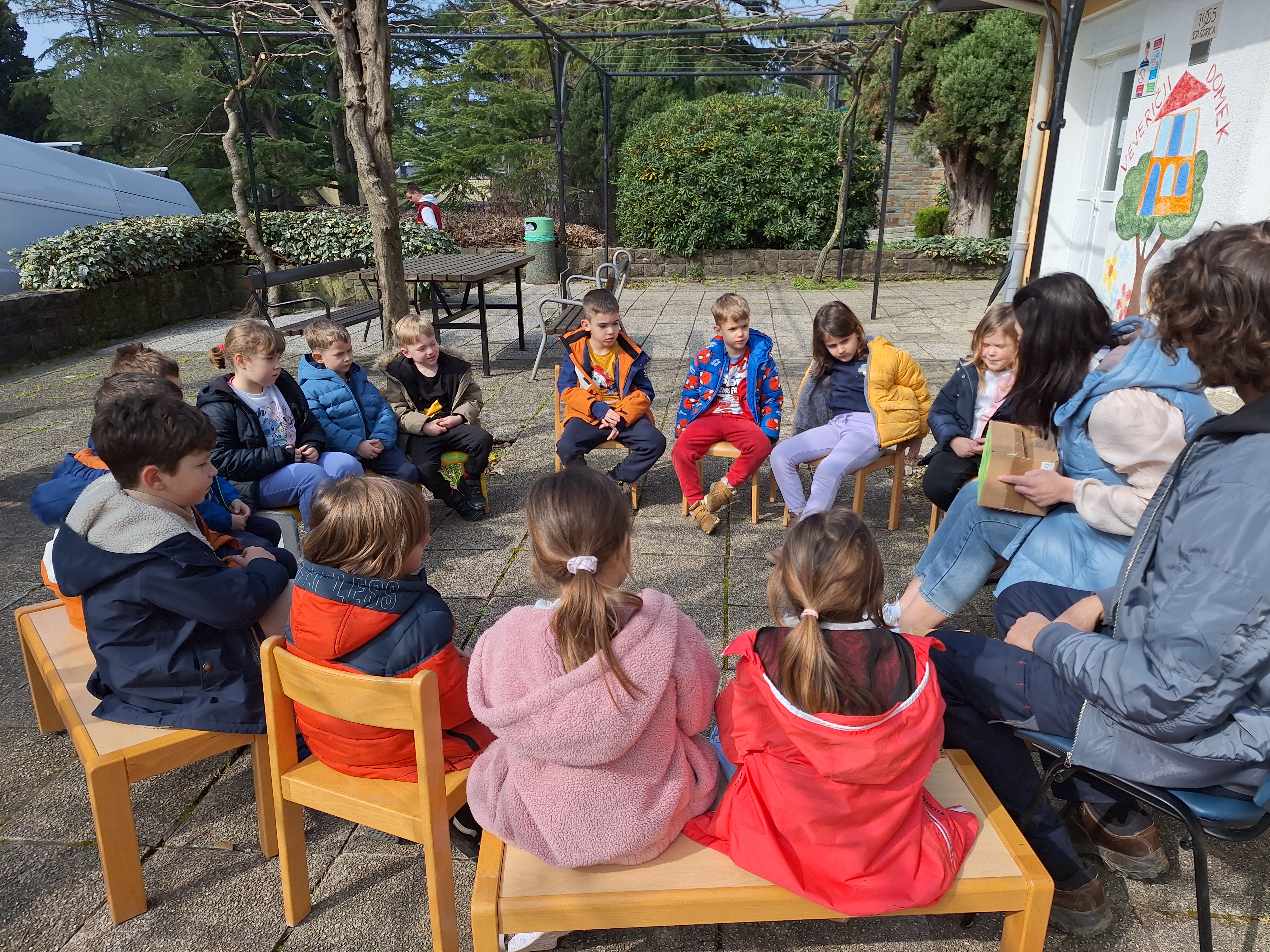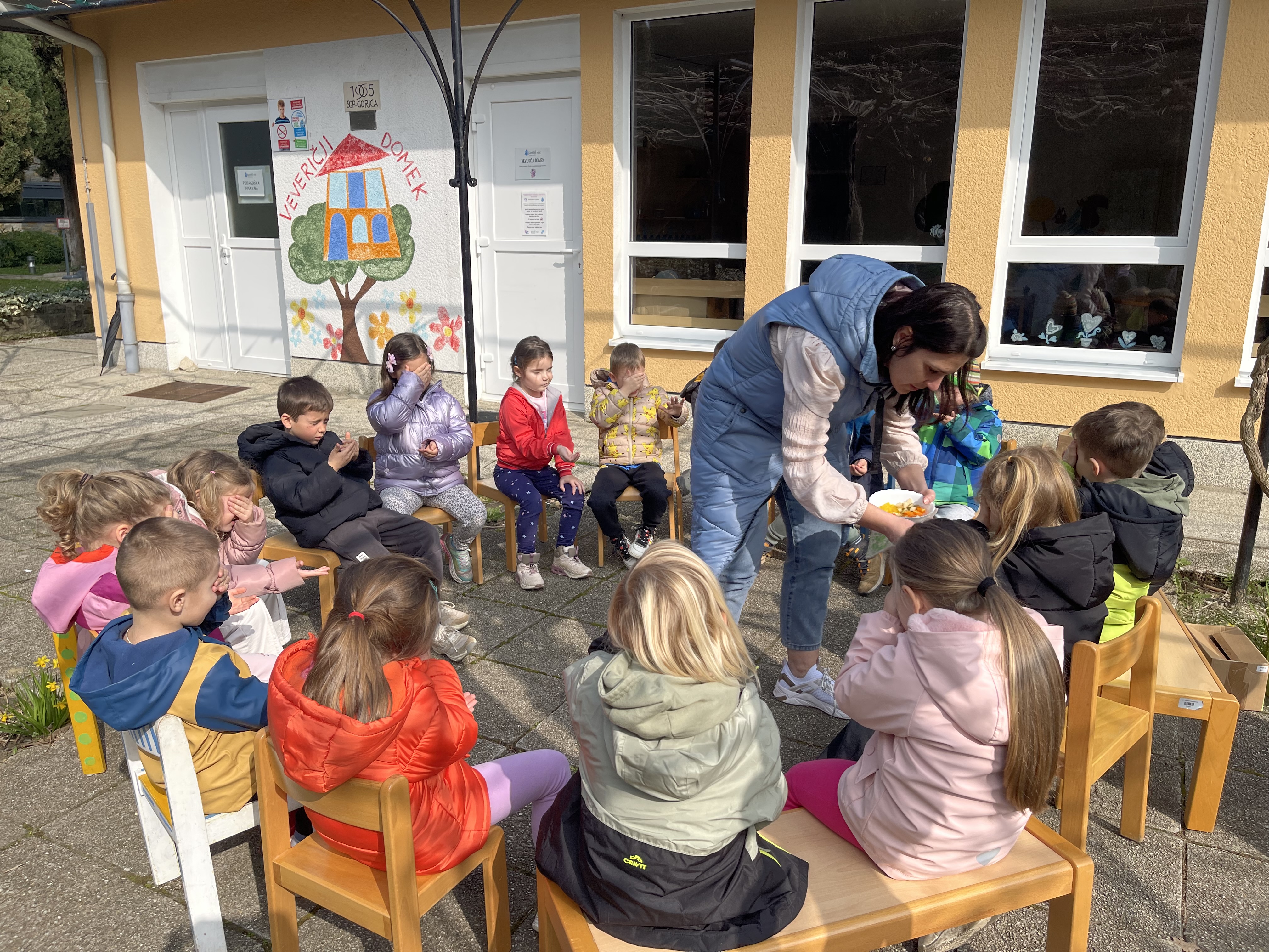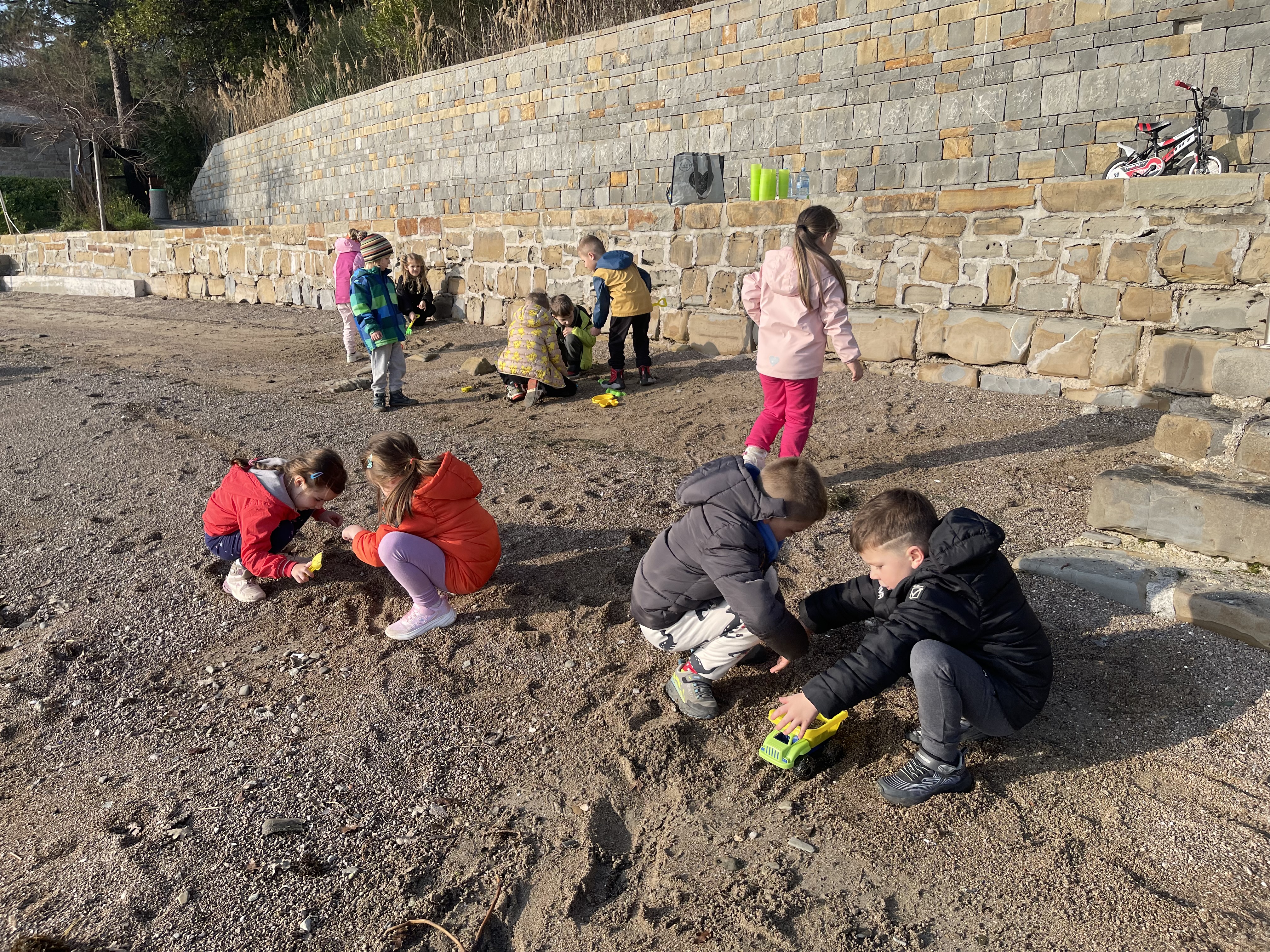 Dan smo pričeli v čisto novi vlogi, spremenili smo se v okoljske detektive in s čutili raziskovali naravo. Nato smo na plaži srečali labode, v gozdu pa veverice. Popoldne smo našli gusarski zaklad in se igrali na igrišču. Zvečer bomo priredili pidžama party, glasbo boste najbrž slišali vse do Pirana in Portoroža.