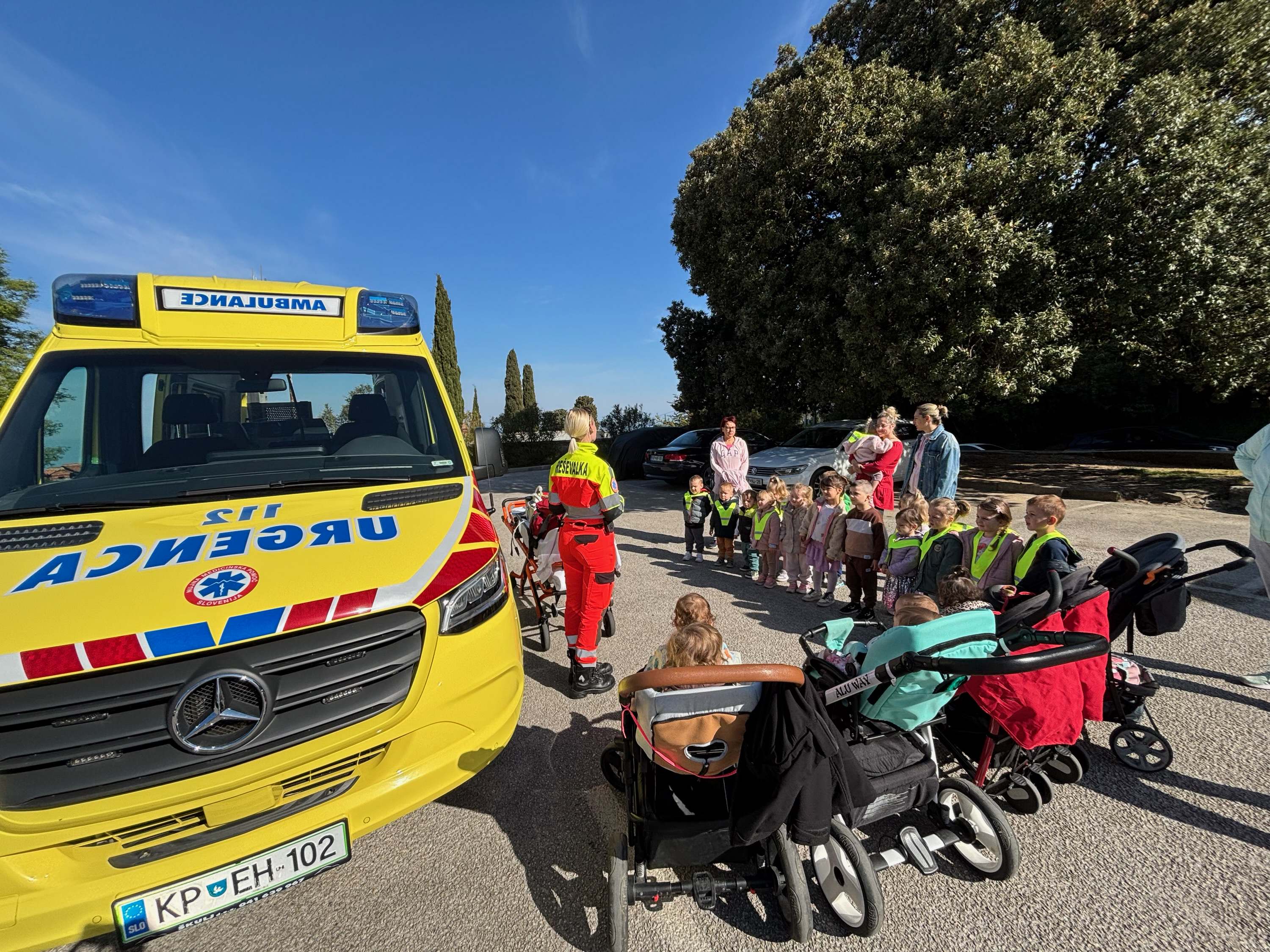 V tednu zdravja smo posebno pozornost namenili gibanju. Najstarejši otroci so na stadionu s kineziologom usvajali osnove atetske abecede. Mlajši so dejavnosti giabnja izvajali v vrtcu. V petek smo dobili tudi poseben obisk. Prišli so reševalci slovenske Istre, ki so nam predstavili svoj poklic. Najbolj smo uživali, ko so se prižgale lučke in sirena.